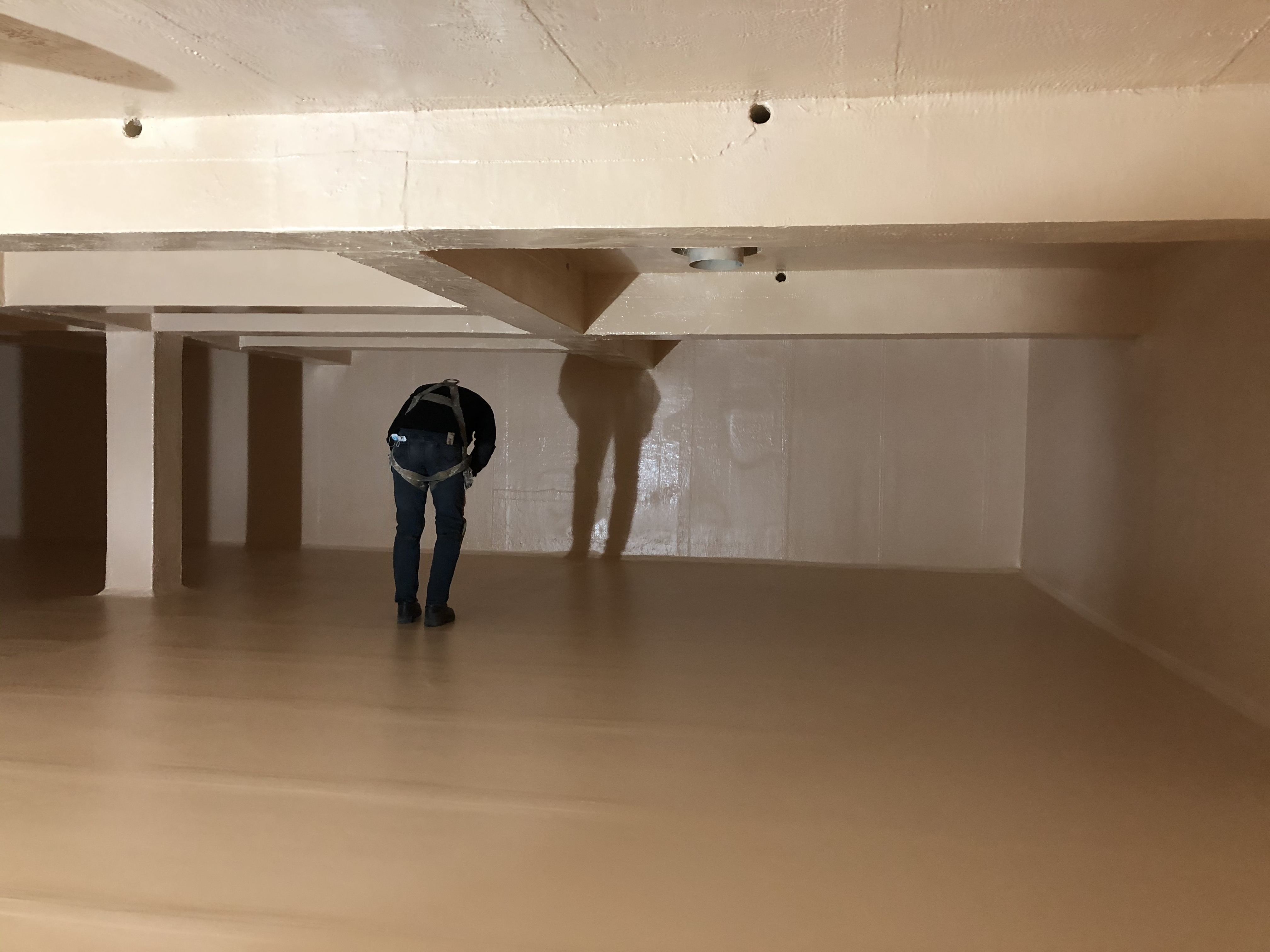 Application d’une couche de finition de membrane Polyuréa/Polyuréthane 100 mils